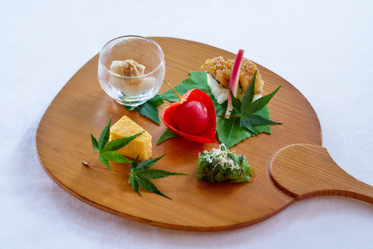 山ばな平八茶屋の料理は、京都の四季を感じさせる懐石料理が中心です。名物の「麦飯とろろ汁」は、丹波産のつくね芋を使った一品で、昔ながらの味わいを楽しむことができます。