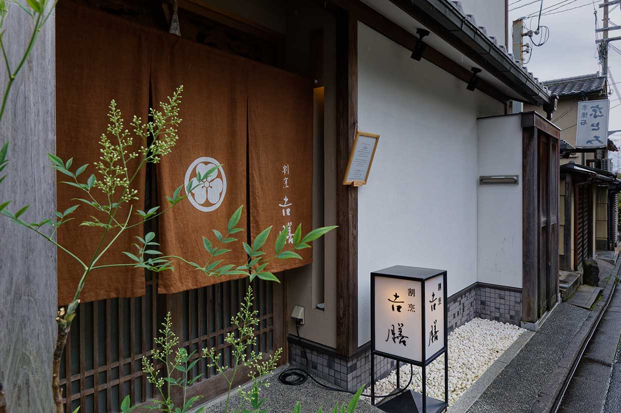 八坂神社や高台寺にも程近い東山の小さな通りに暖簾を掲げる割烹。